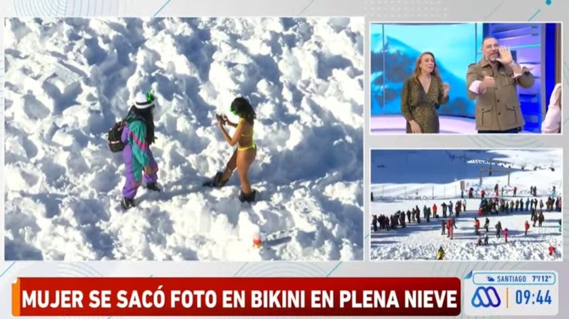 Os apresentadores da manhã ficaram impactados com a atuação da “desinibida da brasileira’, que no meio da neve resolveu tirar algumas fotos com um minúsculo biquíni amarelo. “Olha o horário que ele escolheu para tirar as fotos, nove e meia da manhã, porque é a melhor luz já que depois bate bem alto, aqui você tem os primeiros raios de sol. Você tem que copiá-la”, disse o apresentador do programa, repercutindo de imediato.